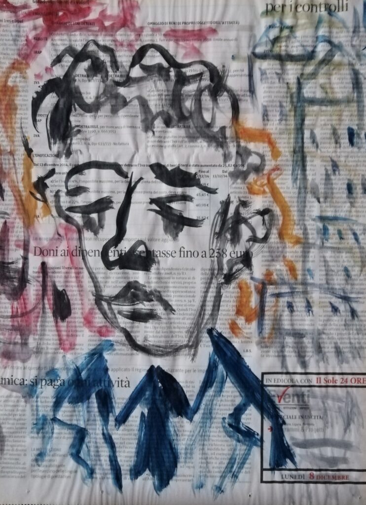 Giampaolo Nuvolati, Flâneur del giorno d’oggi, acrilico su carta di giornale 30x40