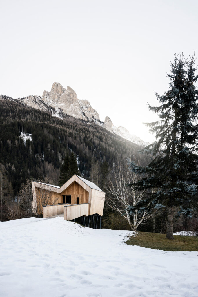 Coniugare il rispetto di boschi e foreste con l’ospitalità e il turismo è un compito spinoso e delicato, perché – a essere intransigenti – basterebbe tenere lontani i due; ci sono però alcune esperienze originali sul tema e che possono offrire spunti interessanti, soprattutto quando ci si confronta con chi fa architettura e costruisce in contesti montani, come succede al pluripremiato studio Noa. Francesco Padovan, firma di diversi interventi immersi nella natura, apre l’argomento con schiettezza: “Detto onestamente, la foresta non ha nessun beneficio a essere abitata. Vi sono però delle ricadute positive, come lo sviluppo di una sensibilità di cura del territorio che l’ospite riporta a casa dopo una vacanza in montagna. In aggiunta, la foresta ha benefici sul benessere mentale, essendo un luogo di stacco, di riposo rispetto ai ritmi e ai rumori della vita urbana. Vi sono delle strutture che sono veri e propri rifugi per l’anima; ne è un esempio il nostro progetto di Zallinger sull’Alpe di Siusi. Qui l’assenza di connessione internet permette di immergersi completamente nella maestosità della natura circostante e gli ospiti possono godere di un momento di benefico isolamento”.